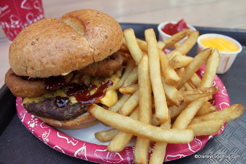 So, since I’m getting hungry, let’s get on with the show! I chose the Angus Burger with onion rings, bacon, and barbecue sauce, on the recommendation of several readers over on the Disney Food Blog facebook page!