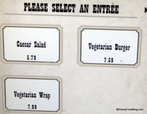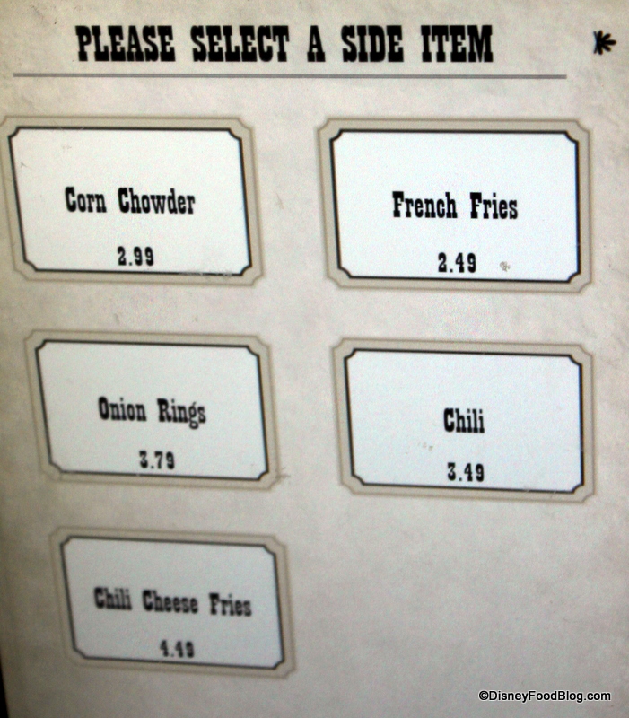 OK, let’s get down to business and take a look at the options! Pecos Bill’s is known for its burgers, taco salads, and condiment bar! Yep — this is one of those lovely spots where you can get unlimited sauteed mushrooms and other goodies to dress up your entree!