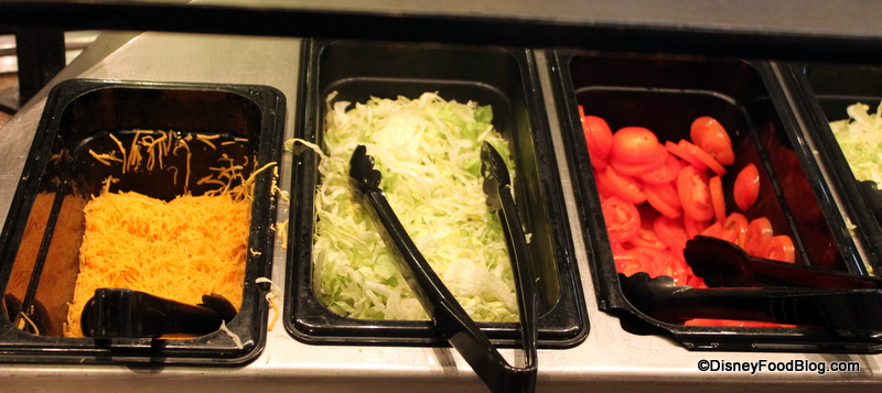 In Nov, Hubby had the burger, I had the taco salad. It was pretty busy that day but I have seen it worse. The goopy (my word for plastic) cheese was out on one side so we had 4-5 people in front of us. The salsa bowl was empty and looked really gross sitting there with little bits stuck on the bowl. I didn’t wait for it to be refilled. By the time we finally started eating everything was cold. IMO those Disney fries are BAD cold. Hot cheese probably would have helped. Ha ha. This is the only time in probably 10 times we had any problems. Hopefully in March our lunch will be better. Think I will try the BBQ pork!