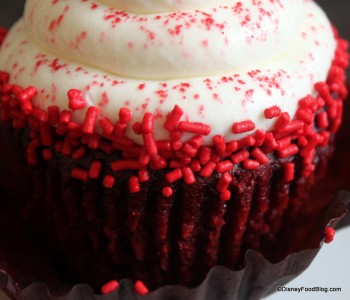 That said, the frosting is still quite good, and it shouldn’t be a reason not to order this snack! Red sugar crystals are incorporated into the frosting, and there’s a border of red sprinkles around the edge. (Personally, I’m not a fan of sprinkles as I don’t want to chew anything waxy as part of my cupcake, but, alas.)