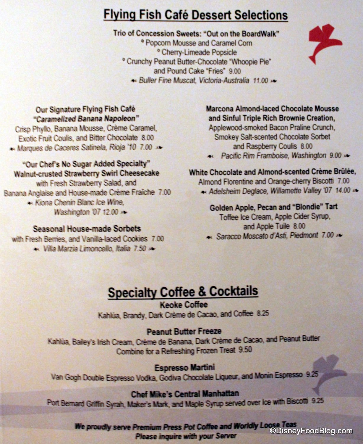 Whew! Just thinking about all of this food again has me ready to make a beeline back to Flying Fish! And although it has the same pros/cons as other Disney signature restaurants — what you loved probably won’t be on the menu anymore, but what you weren’t interested in will probably be gone as well — it just always seems to be good when I go there!
