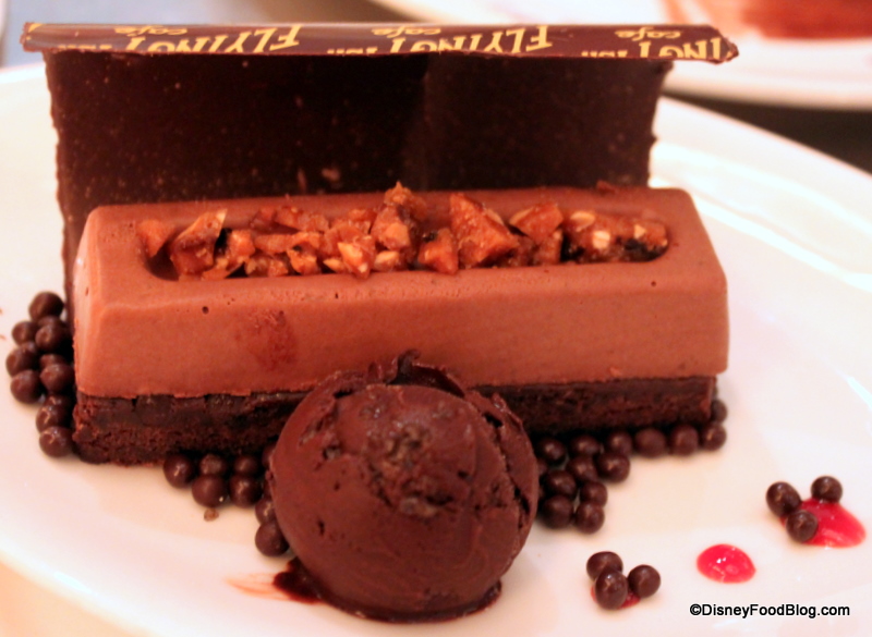 While it was very good, this was the most like a “frou frou Disney signature restaurant dessert” to me, so it didn’t appeal as much as the comfort food feel of the apple tart or the exotic and interesting presentation of the trio of concession sweets. Would love to hear feedback on this dessert from others who’ve tried it!