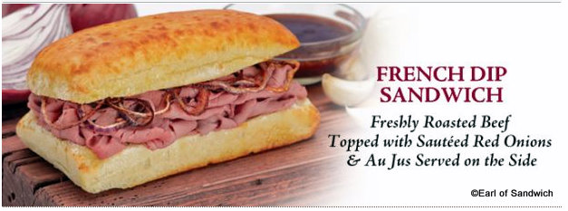 Hey all!! Earl of Sandwich posted on twitter and facebook about their brand new French Dip Sandwich, complete with red onions and au jus!!