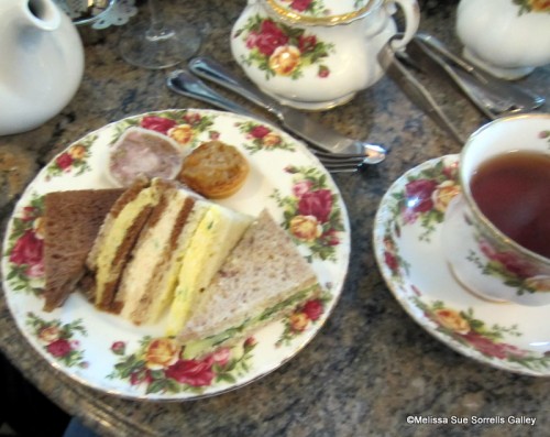 The sandwiches are pear and Gorgonzola, egg salad, curry chicken salad, cucumber, and shrimp salad. My mom and I swap a couple but we always enjoy what is on our plate.