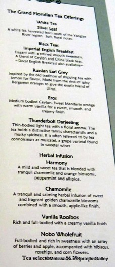 We just had our first experience with afternoon tea at the Grand Floridian. We went on June 24th. My husband, son, 11, and his friend, also 11, and I had a very nice time. I had made reservations two months before hand. At the time, there were only three on the reservation, but they handled the extra person with no problem. Our server was so nice and friendly answering all of our questions and chatting with us. The hostess even took time to teach my son and his friend how to do the fancy napkin fold. She showed them twice. Of course, the room was not full at the time. This was my husband’s second tea experience and my son’s friend’s first experience. My husband is not a tea person so he had the British cheese plate and a coke, while the rest of us had the Grand Tea. I thought that everything was delicious. I loved my sparkling wine that I received with my tea. My only suggestions that I have is to make the small marble tables a little larger, it was hard to hold everything, and to offer lemon curd with the scones. The cream was delicious, but I prefer lemon curd. They also need some seating outside the tea room. I did think the prices were a little high, but this is Disney so I expected the high bill. I love “going to tea” and have had the pleasure of having tea in several tea rooms, including the Ritz Carlton. The prices at Disney are higher than the Ritz and the variety is less. Other than that, we had a delightful time. We were there during Tropical Storm Debbie and this was a nice respite from the weather.