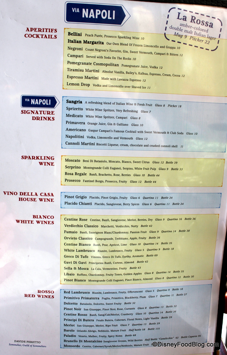 So, on this trip I started with a Lemon San Pellegrino. I’ve been in love with this tart, biting little drink for years and years, and I rarely find it on any menus. Disney World’s Italy is one of the only places I can indulge!