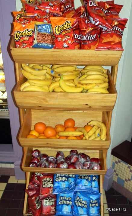 They also have a self-serve bakery counter and areas where you can grab fruit salad and pieces of fruit as well as a beverage case with juice and other options.