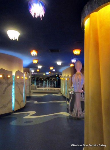 Once you enter through the wave-inspired door, using the seahorse pull handle, you’re in a fully-themed underwater atmosphere, complete with sea anemone light fixtures, a human-sized octopus, and ocean waves as far as the eye can see.