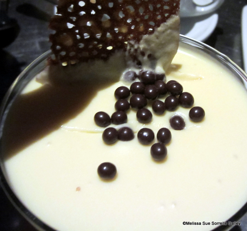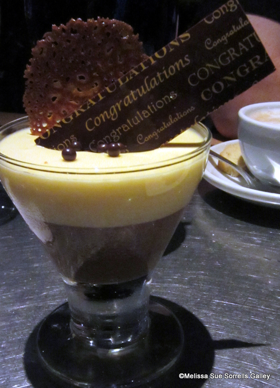 It looked beautiful in the glass, but wasn’t easy to eat because the mousses were both so thick. It wasn’t easy to get them both on the same spoon at the same time. It was also extremely sweet, almost a palate-buster for me. Rob ended up eating most of this one.