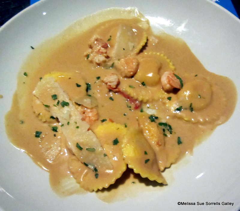 We ordered our drinks. I ordered a Bahama Mama. Now knowing they charge a lot more for drinks, you would think they would want to bring your alcohol as soon as possible to thus increase the check. Since I had never had a Bahama Mama before I ordered a glass of water just in case. He came back about 10 minutes later (without our drinks) and we ordered appetizers. Before our appetizers came, but after the order was placed we ordered the Lobster Ravioli. From the time we were seated to the time we got our appetizers about 30 minutes had passed. Once we were done with those, my Bahama Mama finally came (minus the water). It’s a good thing it was pretty good. About another 25 minutes later we got our meal (still no water). The Lobster Ravioli was DELICIOUS! I enjoyed it immensely.