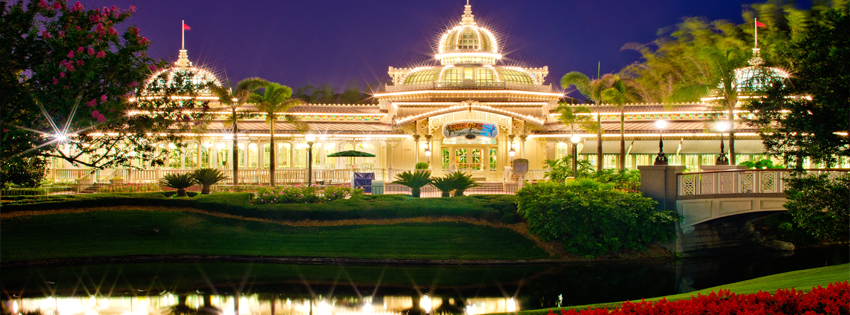 The Magic Kingdom restaurant, Crystal Palace, glistens in the evening as you anticipate your dinner with the Hundred Acre Wood characters.