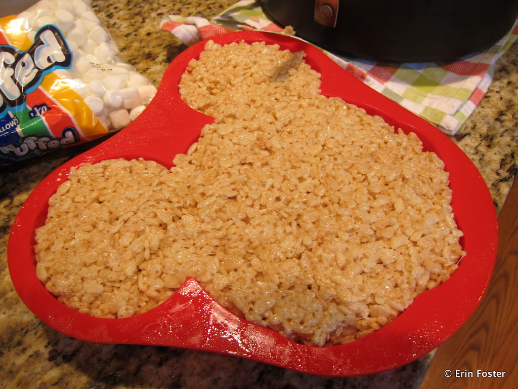 A quick flip onto a plate and — Voila! — a perfect Mickey krispie treat.
