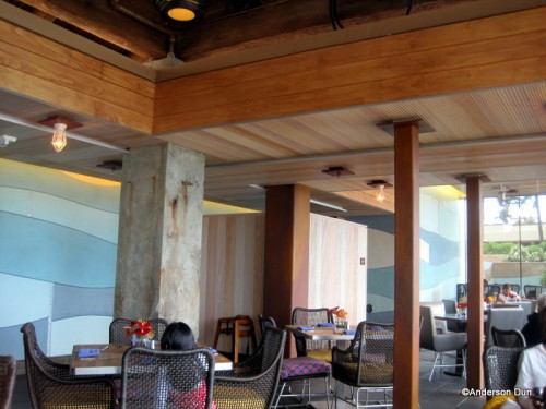Unlike the rest of Aulani, some of which I find to be fun but over-the-top, the restaurant is decorated minimally. The design is another open-air, thatched-roof hut, while the blue murals on the walls mimic the ocean. I found the entire setting calm and relaxing.
