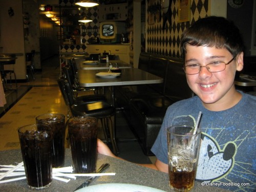 After several rides on Star Tours, the Tween was thirsty and asked for a refill. He got three!