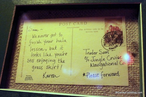 With literally hundreds of things to look at all over the walls (souvenirs from Trader Sam’s adventures, of course) — many of them equipped with sight and word gags, or even special effects — this place definitely fits into the true, classic Disney imagineering style.