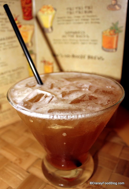 Another drink we ordered was an old favorite of mine — the Kungaloosh! This is a classic drink that was developed at the aforementioned Adventurers Club in Disney World’s Pleasure Island; and though it isn’t actually on the menu at Trader Sam’s, they’re happy to re-create it for you!