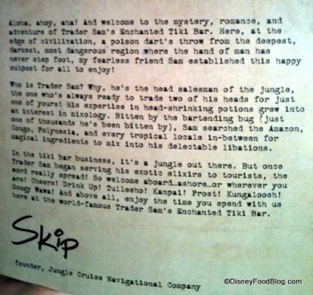 The Trader Sam’s menu is a sight to see. Each drink is individually illustrated next to its description!