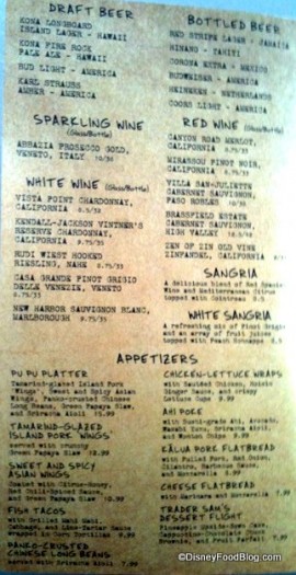 The menu has several other yummy appetizers like chicken-lettuce wraps, fish tacos, Kalua Pork Flatbread, and the Trader Sam’s Dessert Flight. And I just heard that a few more items have been added, including a Panko-Crusted Chicken Sandwich, and an Angus Cheeseburger (thanks to the Trader Sam’s facebook page for that update)!