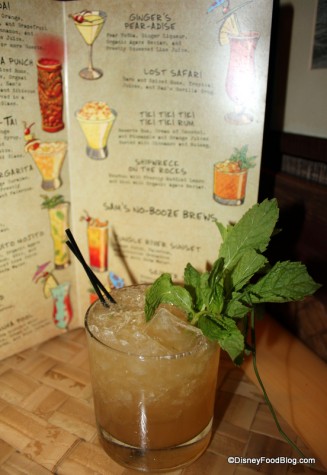 There are some really fun “no-booze brews” on the menu at Trader Sam’s as well, and we couldn’t help but order the Schweitzer Falls (named after the beautiful Schweitzer Falls, which is named after it’s founder, Dr. Albert Falls, and seen on the Jungle Cruise attraction).
