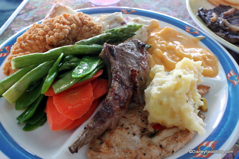 While options rotate, you may find Jerk Chicken Salad, Caribbean-style Conch Chowder, Fettuccine withParmesan Crusted Chicken, New York Strip Steak, Banana Crème Brûlée, Cinderella’s Lemon Cheesecake, Minnie’s Mini Burger, and Chicken Tenders.