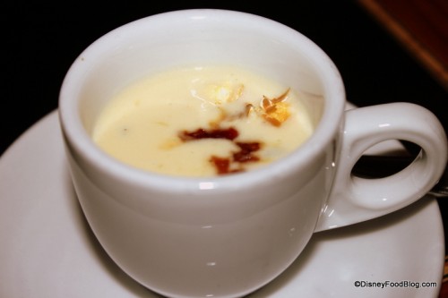 The meal started out with a lovely corn and pomegranate amuse bouche — very much enjoyed by everyone at the table. (By the way, the amuse bouche thing is happening more and more at Disney’s signature restaurants, so keep an eye out for it on your next visit.)
