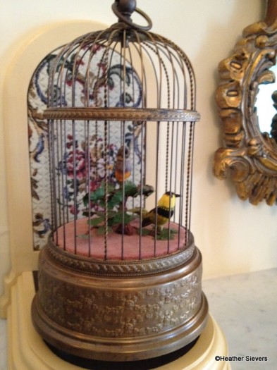 In this room you will also find a gorgeous chandelier, a magical fireplace, and one of the “birdcages” that inspired the tiki room and other animal animatronics.