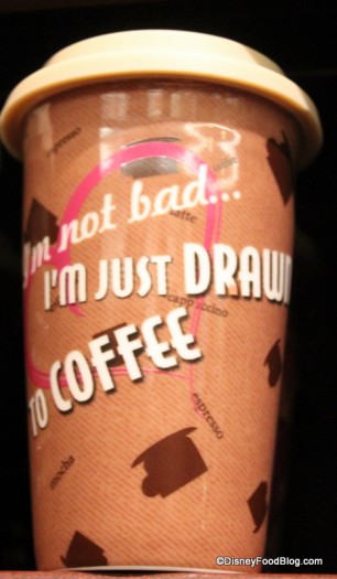 Well, we’ve spotted some adorable ceramic tumblers that sport similar sayings and are perfect for your morning cup of joe! Currently priced at $14.95, these Disney Theme Park Exclusive mugs make a great take-home souvenir.
