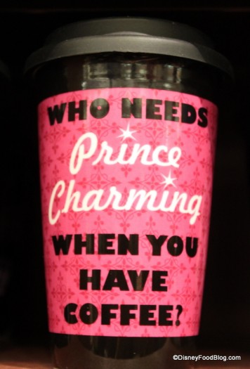 Cinderella fans can sip their brew from this tumbler. Show off your independence and love for coffee with this “Who Needs Prince Charming When You Have Coffee” mug.