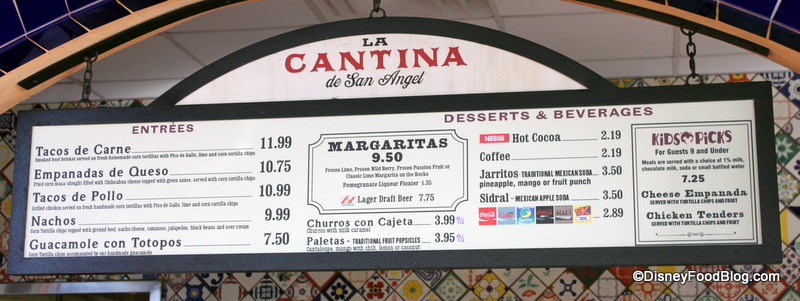 La Cantina de San Angel is a fun new addition to the World Showcase Mexico pavilion. Its accessibility and great views make it a prime target for everyone and anyone visiting Epcot, so try to avoid main mealtimes if you’d like to have a relaxing visit.