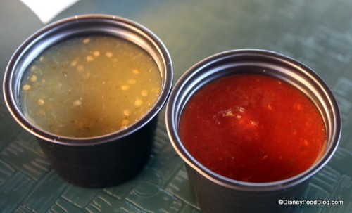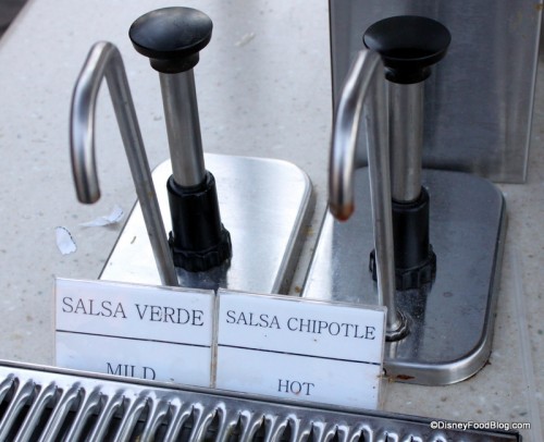 From there it was on to the condiments table where you can pick up utensils, salsas, napkins, straws, and the like.