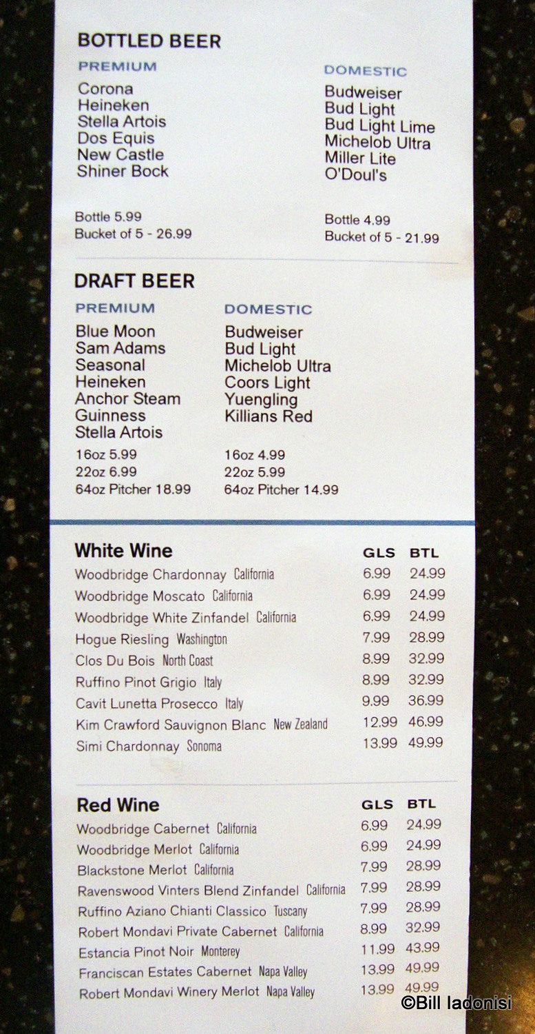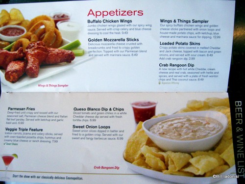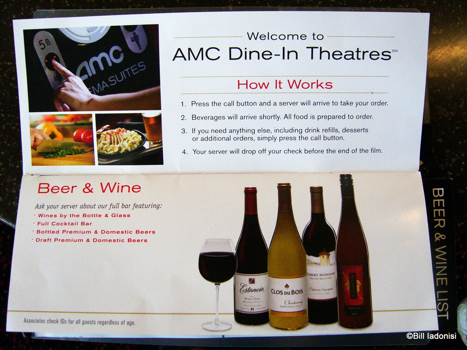 Joining me for dinner and a movie was my wife, Donna, and good friend John. We arrived approximately half an hour before the movie, purchased our tickets, and sat down. The wait staff at AMC is efficient and courteous. We ordered our beverages and started going over the menu.