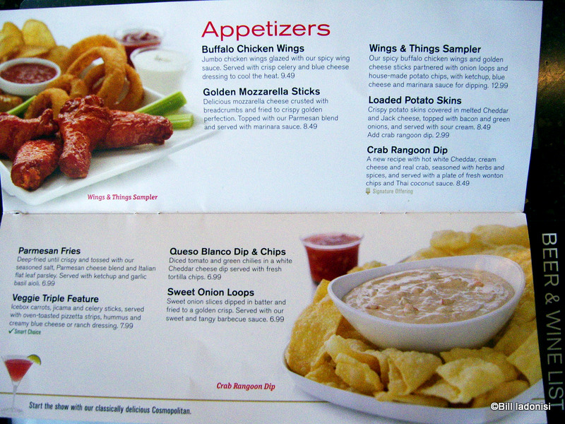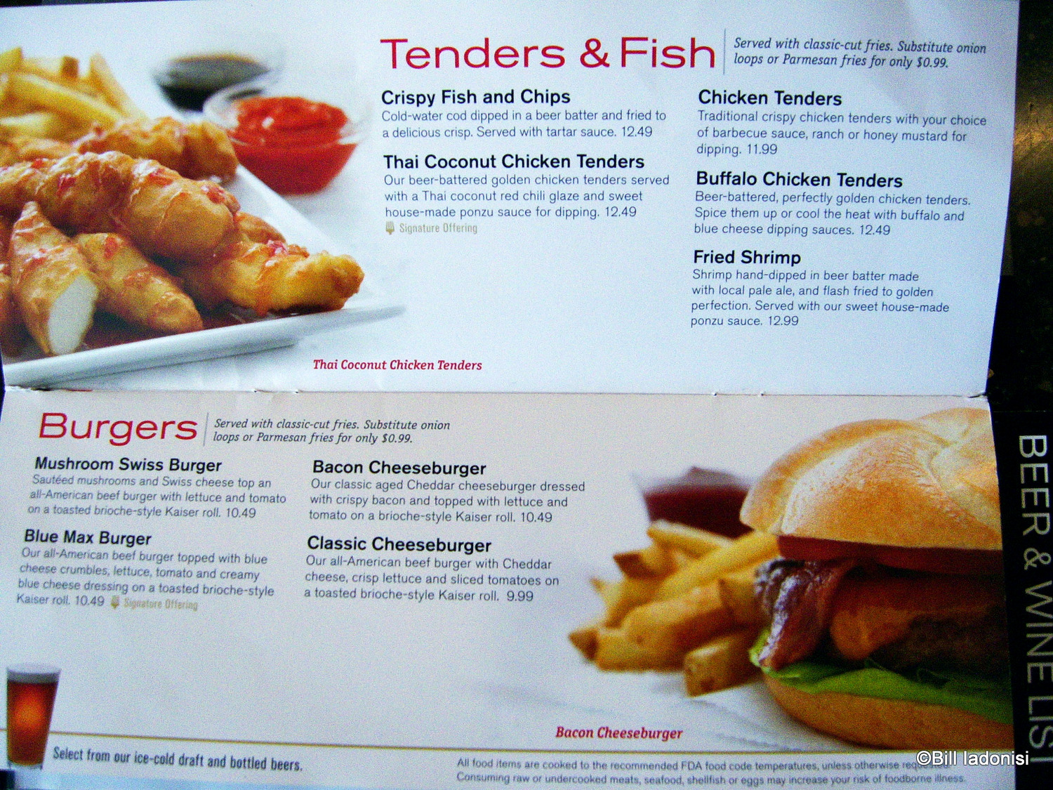 The menu is quite extensive, and the portions are large. In fact, many of the appetizers can be shared. This is roadhouse, rib-sticking fare — food that is robust, easy to eat, and tasty is what you’ll find here. From appetizers like jumbo Buffalo wings to Crab Rangoon dip, assorted burgers, fish, several varieties of pizza, salads and chicken, there is something for everyone here.