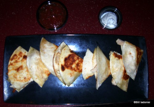 John decided on the chicken quesadillas ($9.99). This plate consisted of nine plump quesadillas wrapped in a soft, fresh flour tortilla. There was an ample amount of chicken and cheese stuffed in the quesadillas and John could not even finish his meal!