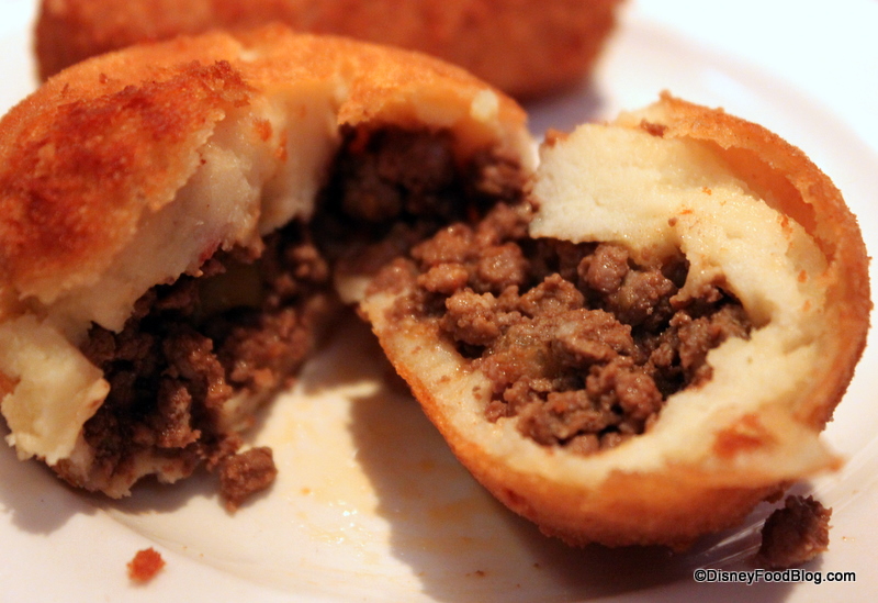 The fried stuffed potatoes featured a perfectly crisp outer layer of potato, and inside held a flavorful picadillo beef filling surrounded by more fluffy potato.