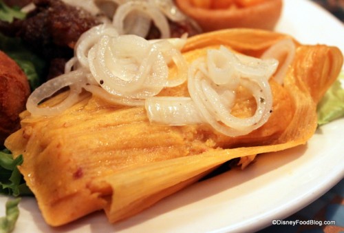The tamale featured a traditional shredded pork filling encased in a moist, cornbread-like outer layer, and was served unwrapped, sitting on a bed of corn husk. All of this was topped with marinated tangy onions that made other appearances throughout the meal.