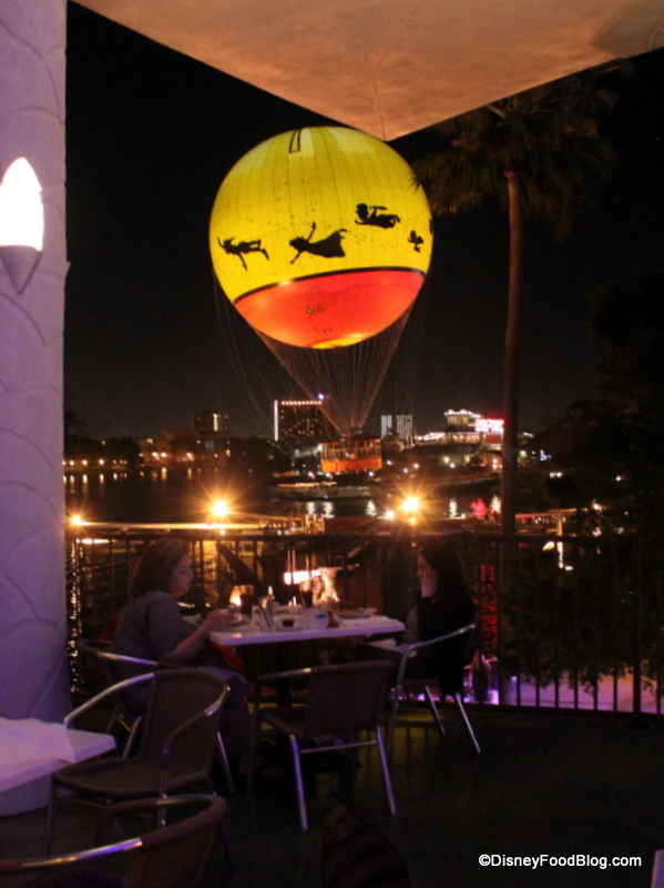 The upstairs veranda also provides a pleasant view of surrounding hotels, the Characters in Flight balloon, and the lake beyond. VERY cool view, eh??
