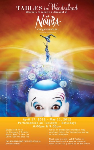 Tickets will be Category 2, and price will be $66.75 for adults and $54.00 for kids. Call 407-WDW-SEAT (407-939-7328) to purchase tickets! (Must show current Tables in Wonderland card when picking up tickets at the Box Office.)
