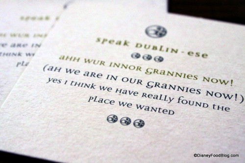 Another fun part of the drinks? The “learn to speak Irish” coasters with funny expressions. We were talking about “grannies” for the rest of the day.