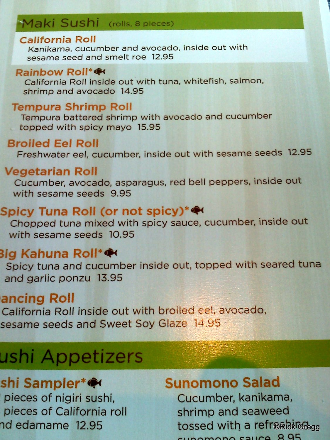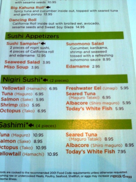 Note that sushi selections are on the back of the bar menu.