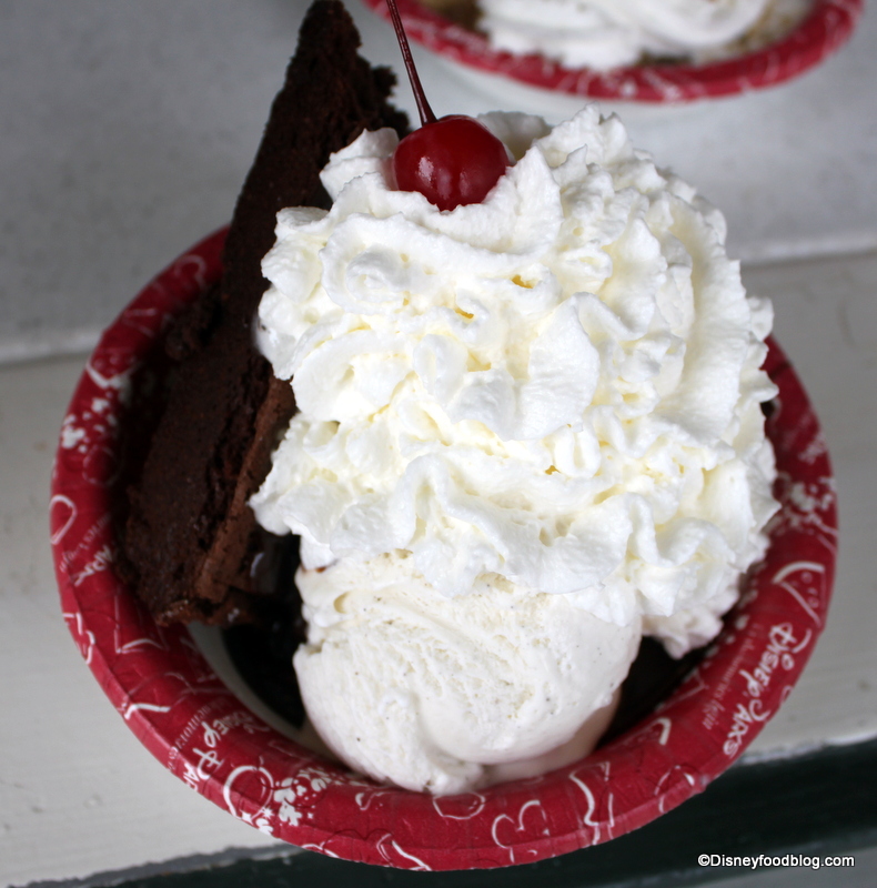 And if you’re a brownie and hot fudge sundae lover, this is definitely for you. The hot fudge is thick and super-sweet, and complements the creaminess of the ice cream well (especially when that ice cream gets a little melty). The brownie was not at all dry, which is always the big fear when you do Theme Park brownies…