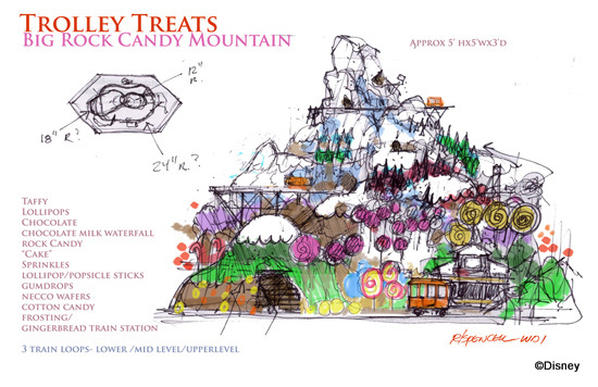 Trolley Treats will also feature the awesome “Rock Candy Mountain.” Displayed prominently in the front window, Rock Candy Mountain is a replica of an idea envisioned back in 1957 by Imagineer Claude Coats.
