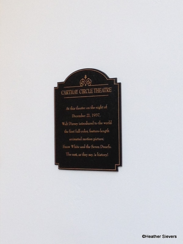 At this theater on the night of December 21, 1937, Walt Disney introduced the world to the first full-color feature-length animated motion picture; Snow White and the Seven Dwarfs. The rest, as they say, is history.