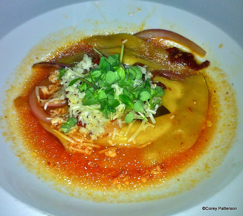 Once everything arrived, we found that the Ravioli was a great balance of pesto, sun-dried tomatoes and the goat cheese (which wasn’t overpowering). Delicious.