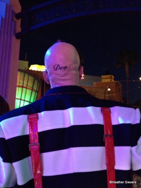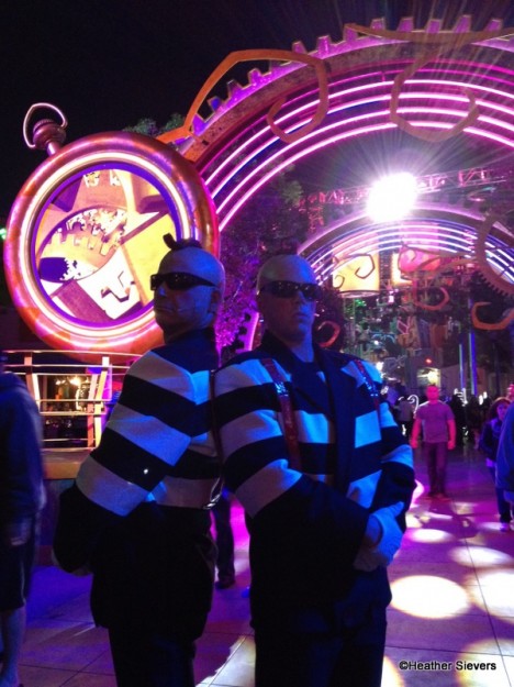 While waiting for the Rabbit Hole to open, which basically meant walking though a long tunnel of mist, Tweedle Dee and Tweedle Dum greeted guests and put on a little banter to entertain us while we waited. I wonder if these guys shaved their heads for the part?