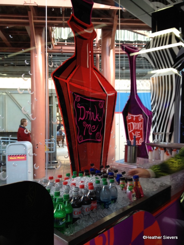 As soon as we got past the Tweedles, we hung a right to the new “Drink Me” bar, where I noticed some very fun decor.