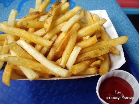 We were feeling rather pork-y (ha ha!) on our recent visit, so we sampled the ribs and the pulled pork sandwich. (Don’t forget to visit the sauce islands in the middle of the pavilions to get extra ketchup and barbecue sauce!) We also got an order of fries to split, and I made the horrible decision to get a Key Lime Mousse dessert — more on that later.