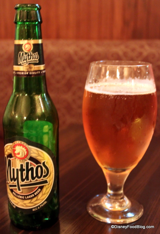 Since beers are a new hobby for us, we sampled a couple of the more interesting options on the menu. First up, the Mythos Beer from the Mythos Brewery — the second largest Greek Brewery. This one was light and crisp, but a bit skunky for our liking.