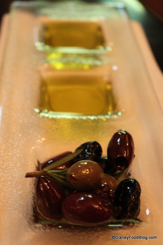 First up, we dug into Kouzzina’s complimentary bread service, which features two types of olive oils as well as marinated olives. This was a new touch since the renovation, and we thought it was really nice.