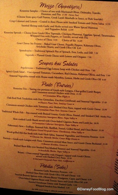 I ate at Kouzzina about 2 years ago under the old menu. I was quite impressed, although I had the nagging feeling that it was not going to do that well due to unique menu. Like it or not there is a reason that Disney tends to water down it’s ethnic food choices and Kouzzina doesn’t make many considerations or compromises. Nor should it.