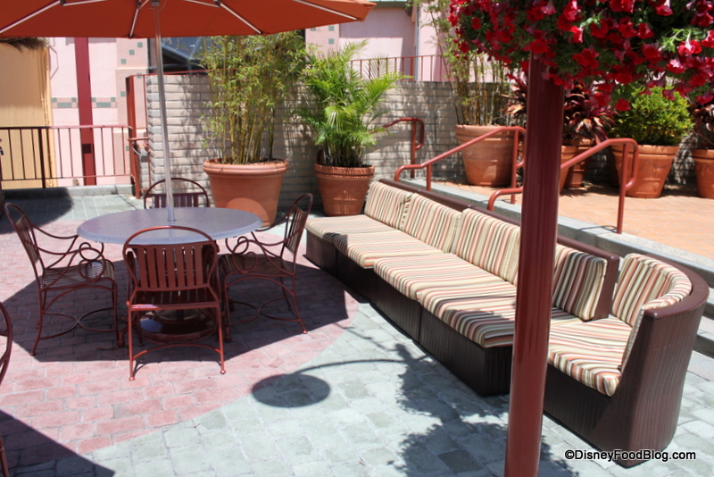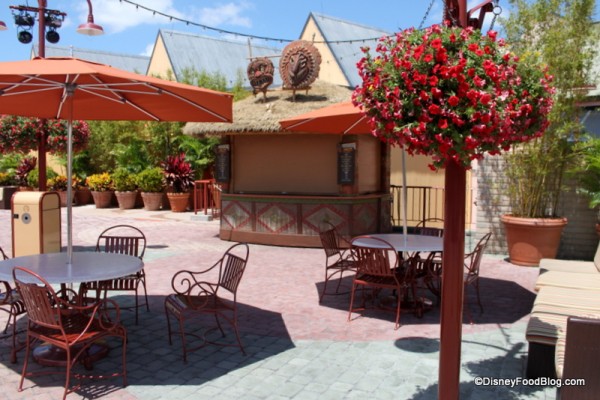 Although this kiosk is a far cry from the Adventurers Club, it does offer some pretty great outdoor seating.